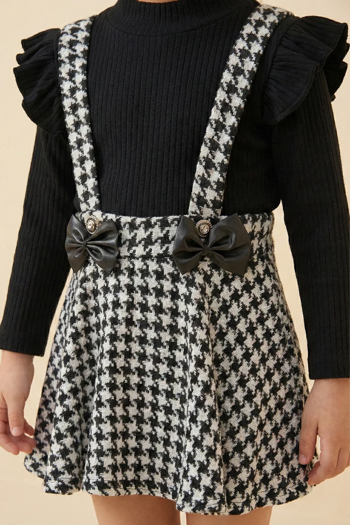 Küçük hanımefendiler için zamansız bir şıklık! Klasik siyah-beyaz kazayağı (houndstooth) deseninin asaletini taşıyan bu jile takım, özel günlerin ve şık davetlerin vazgeçilmezi olacak.