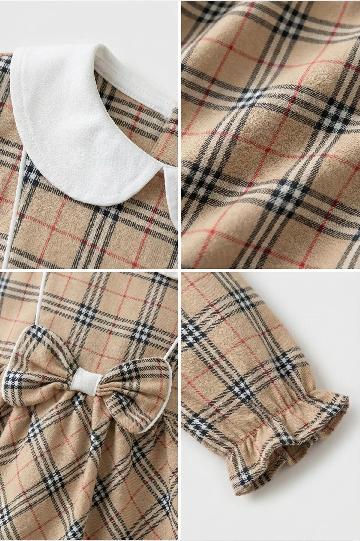 Bebeğinizin zarafetini ön plana çıkaracak bu özel tasarım elbise, zamansız ekose deseni ve sofistike detaylarıyla gardırobunun en sevilen parçası olmaya aday. Hem özel günlerde hem de günlük şıklıkta fark yaratmak isteyen ebeveynler için ideal bir seçim.