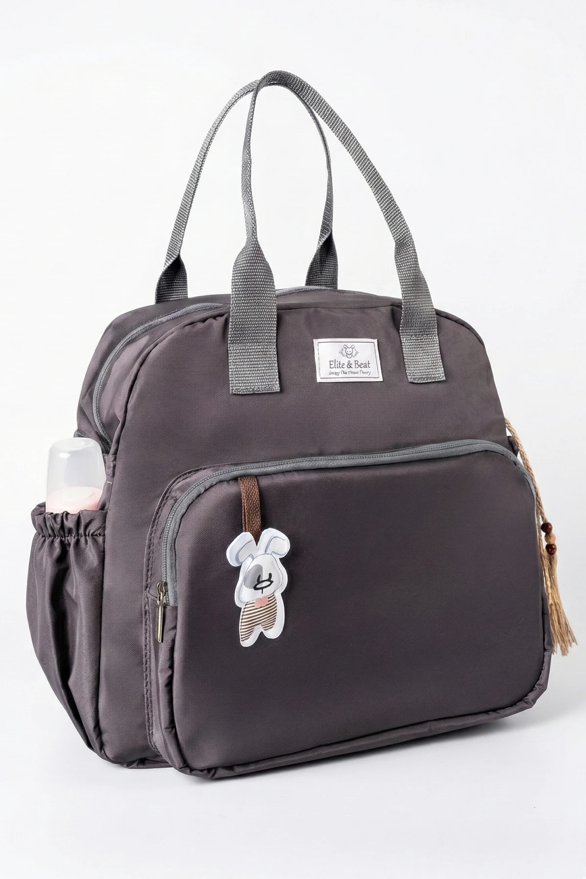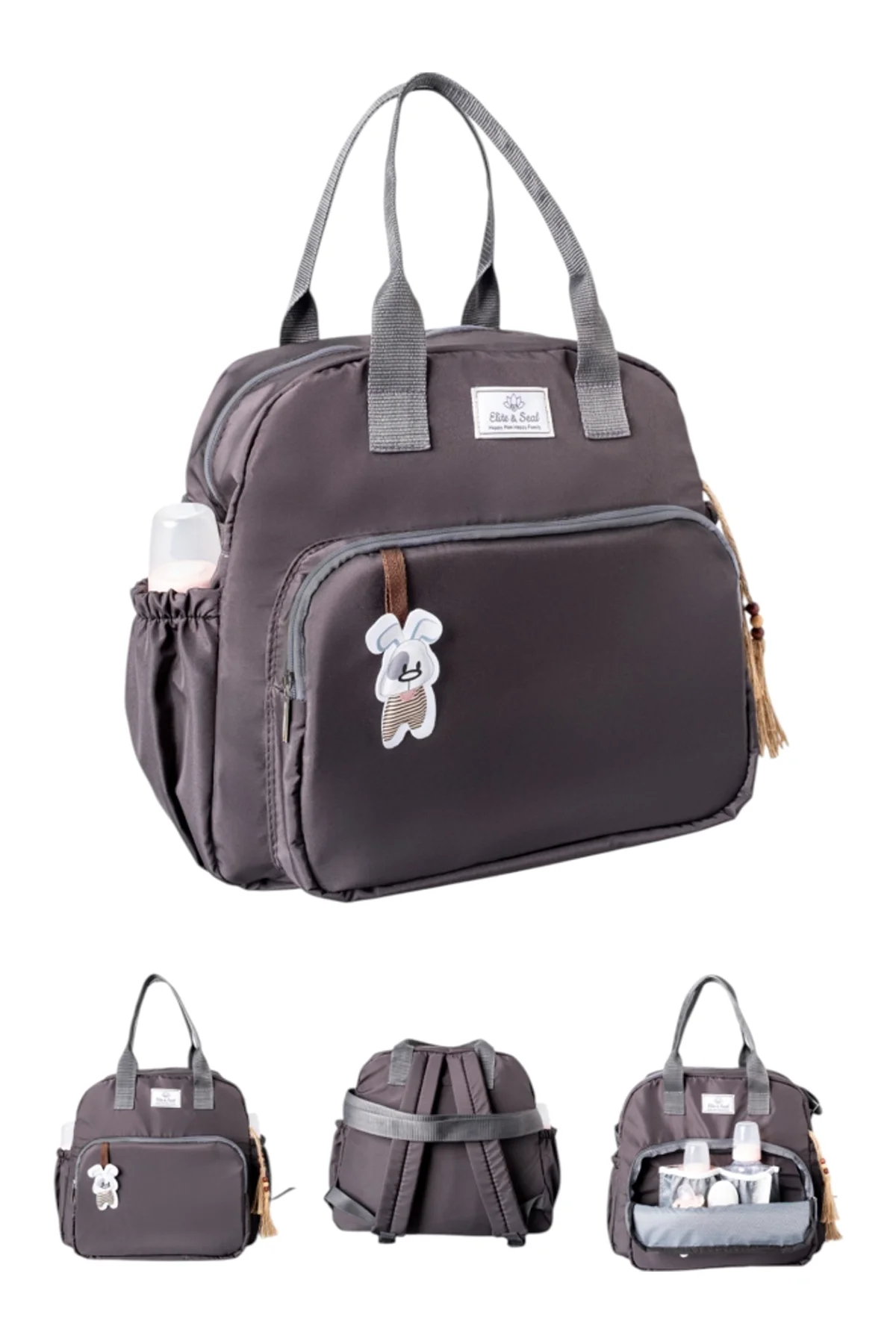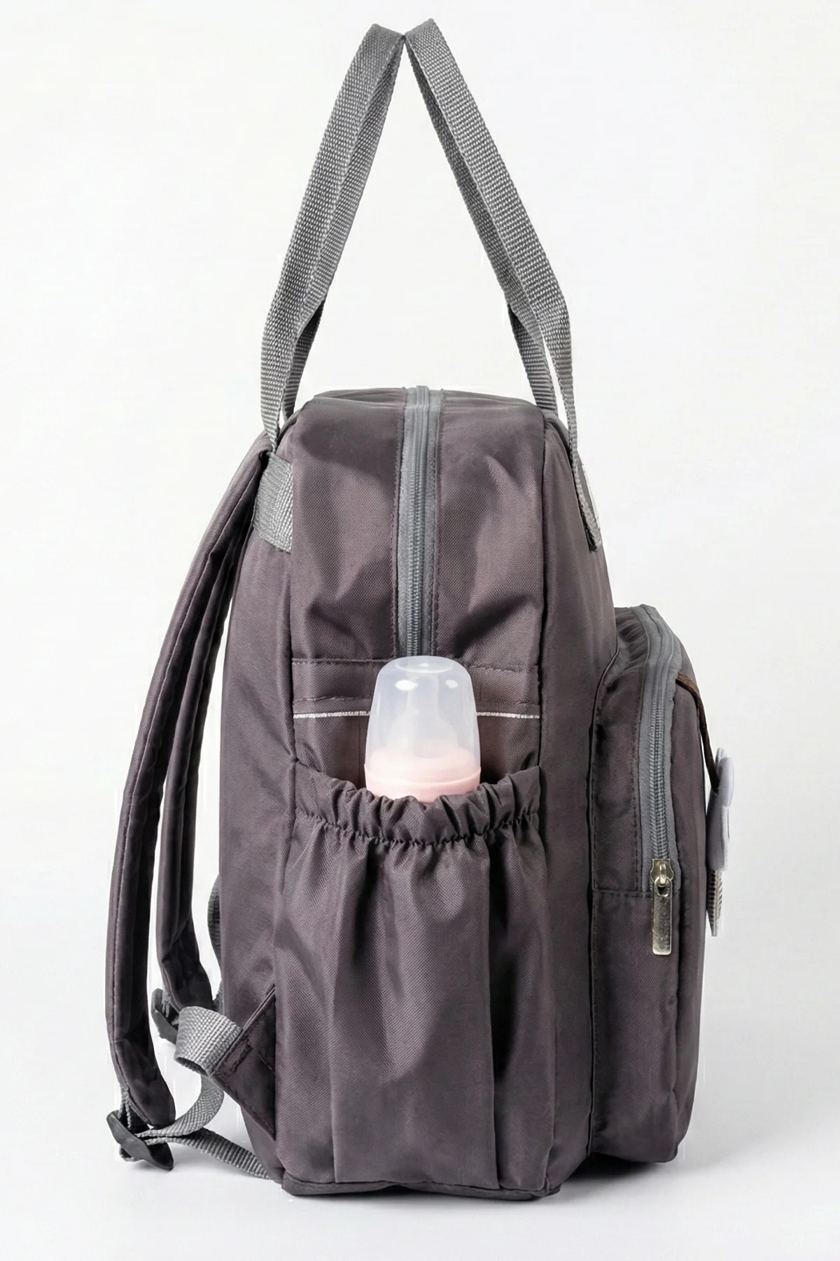 Modern füme rengi ve leke tutmayan kumaşıyla her koşulda temiz ve şık! Termal biberon gözleri, geniş iç hacmi ve ergonomik sırt askılarıyla ebeveynlerin en büyük yardımcısı.
