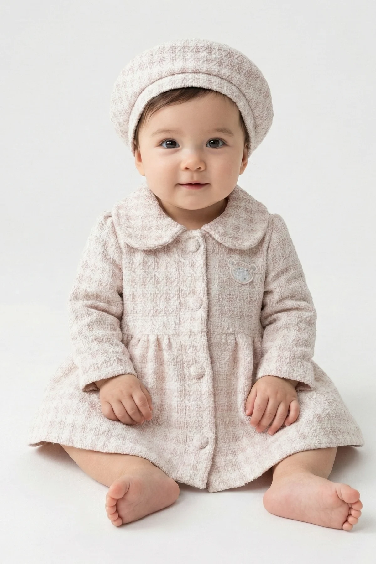 Bebeğinizin gardırobuna hem klasik hem de modern bir dokunuş katmaya ne dersiniz? Özel dokusu ve ikonik tasarımıyla öne çıkan bu şapkalı trench elbise takımı, miniklerin en şık anlarına eşlik etmek için tasarlandı.