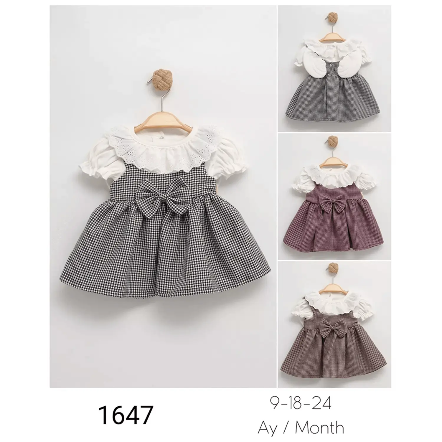 Tufitto 1647 Kız Bebe Kazayağı Desenli Kanatlı Elbise