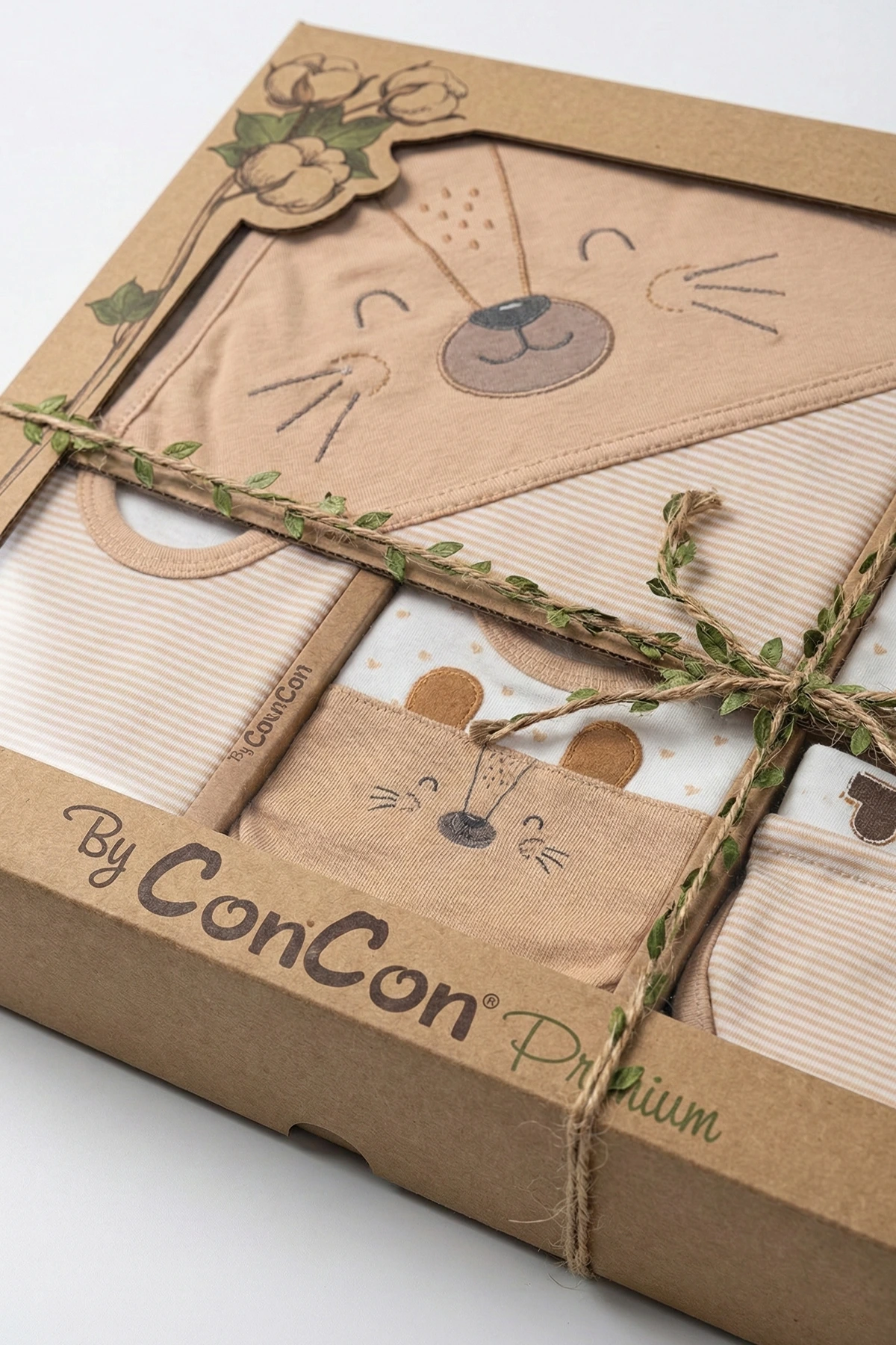 Doğal bej ve ekru tonlarının huzur veren uyumu, sevimli ayıcık/hayvan figürleri ve üç boyutlu kulak detaylarıyla birleşerek bebeğinizin ilk fotoğraflarında harika bir görünüm sağlar. Nefes alan organik dokusu sayesinde bebeğinizin cildi tahriş olmaz, terlemez ve gün boyu konforlu hisseder.