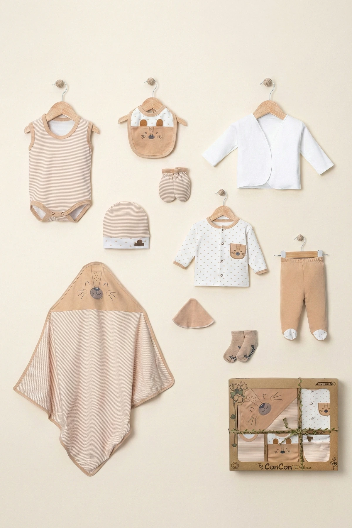 Bu lüks set, bebeğinizin hastane çıkışında ve ilk 3 ayında ihtiyaç duyacağı tüm temel parçaları içerir: